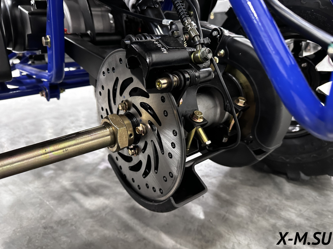 Гидравлическая тормозная система, замкнутая в общий контур, который равномерно распределяет нагрузку на все колёса, с вентилируемыми тормозными дисками Nippon (Hitachi) отвечают за эффективное торможение. Регулировка хода курка газа – если вы учите своего ребенка общению с техникой.